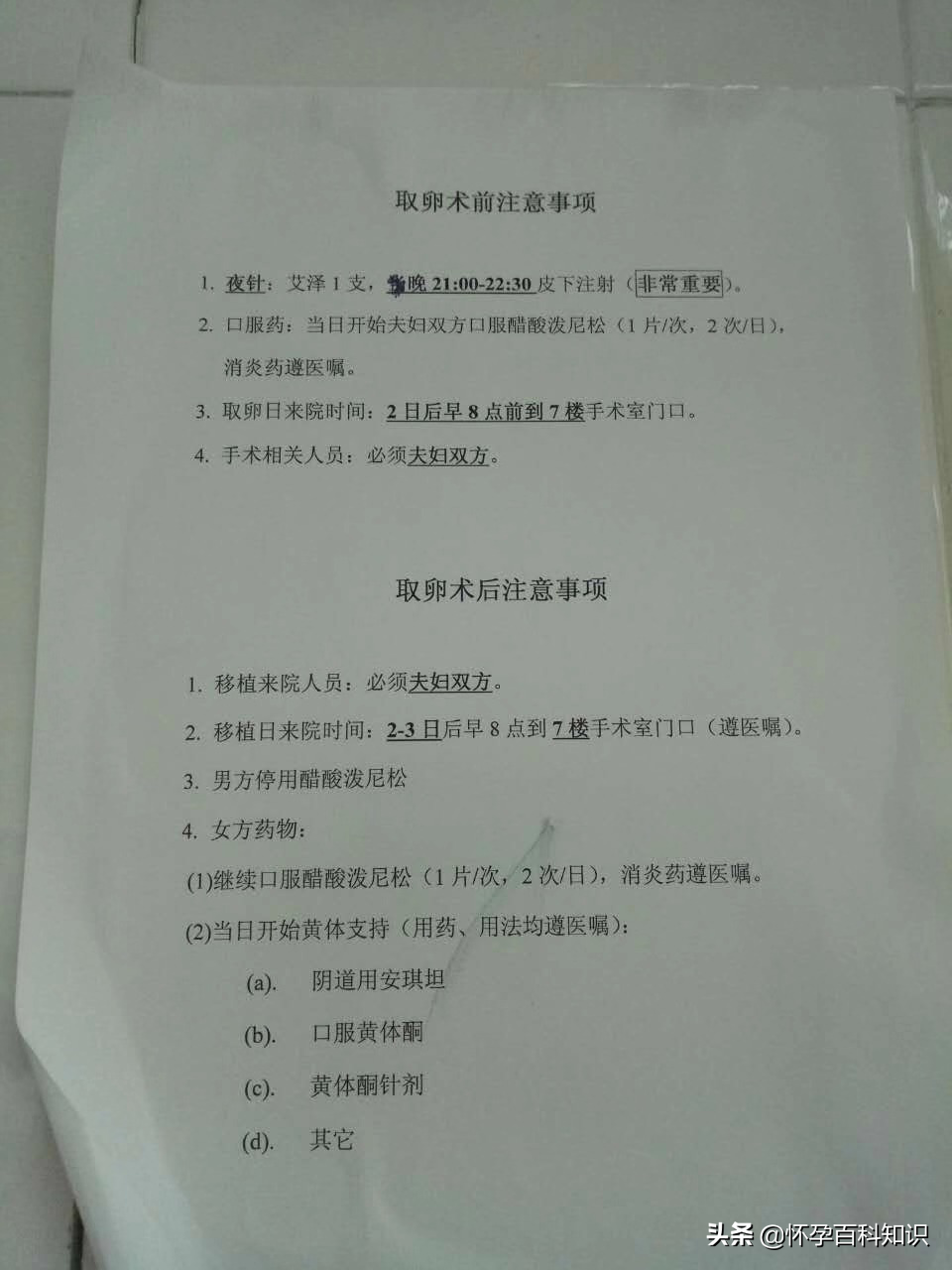 取卵注意事项: