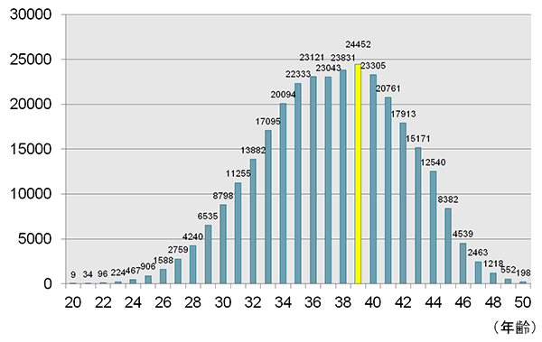 日本产妇人科学会根据年龄别ART(高度辅助生殖医疗)施行者的统计表