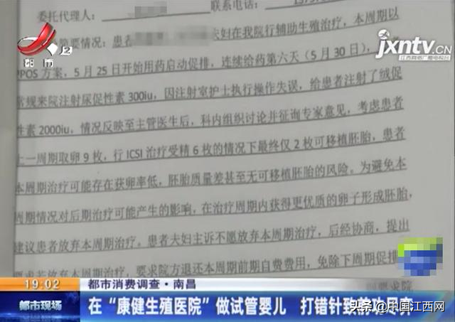 据王先生介绍,今年5月,他和爱人来到了位于南昌市福州路的康健生殖医院尝试做试管婴儿。可是在促进卵泡发育这个环节快要结束的时候,却发生了意外,护士给女方打错了针。